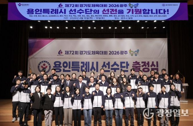 광장일보 주재영 기자 | 용인특례시는 30일 시청 에이스홀에서 ‘제72회 경기도체육대회 2026 광주’에 참가하는 선수단 출정식을 개최했다.
