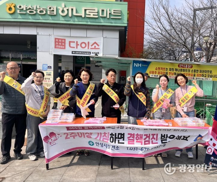 광장일보 주재영 기자 | 안성시보건소는 ‘제16회 결핵 예방의 날(3월 24일)’을 맞아 지난 3월 25일 관내 유동 인구가 많은 안성농협 하나로마트 정문 및 안성시장 인근에서 ‘결핵 예방 캠페인’을 실시했다고 밝혔다.