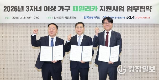 광장일보 주재영 기자 | 전북특별자치도가 현대자동차·기아와 손잡고 자녀 3명 이상 다자녀가구를 위한 패밀리카 구입비 지원사업을 전국 최초로 본격 가동한다.