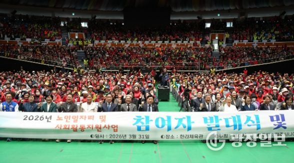 광장일보 나학천 기자 | 도시락을 배달하고, 공항 상공의 불법 드론을 감시하고, 아이들의 등하원을 돕는다. 수혜자가 아닌 지역사회의 능동적 참여자로서, 2,600여 명의 어르신들이 31일 제주한라체육관에 모여 새출발을 다짐했다.