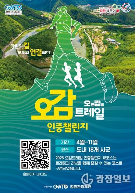 광장일보 이현나 기자 | 강원관광재단은 지난해 좋은 성과를 거둔‘오감트레킹’사업을 더욱 확장하여, 강원 트레일 관광 활성화를 위한‘2026년 오감트레일’사업으로 본격 추진한다고 밝혔다.