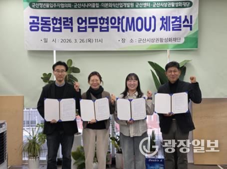 군산시상권활성화재단은 군산 청년몰입주자협의회, 더본외식산업개발원 군산센터, 군산시니어클럽과 함께 ‘청년몰 활성화를 위한 업무협약(MOU)’을 체결하고, 청년몰 경쟁력 강화 및 방문객 유입 확대를 위한 공동 협력에 나선다고 밝혔다.