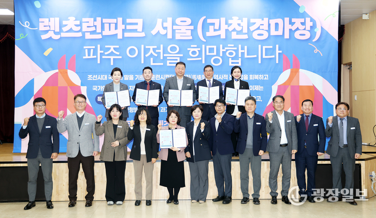 파주시= 주재영 기자 | 파주시는 3월 31일 농업기술센터 농업과학교육관에서 렛츠런파크 서울(과천경마장) 유치 서명식을 열었다.