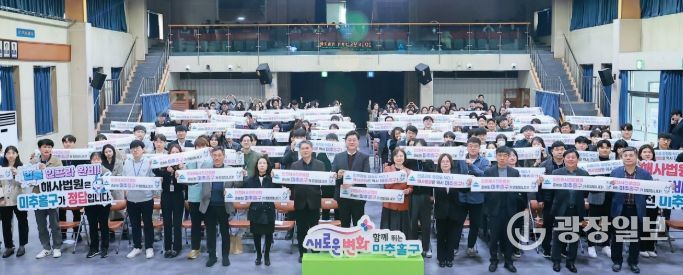 광장일보 주재영 기자 | 인천 미추홀구는 1일 2026년도 2분기 직원 조회를 열고 ‘인천해사국제상사법원(이하 해사법원) 미추홀구 유치’를 위한 캠페인을 개최했다.