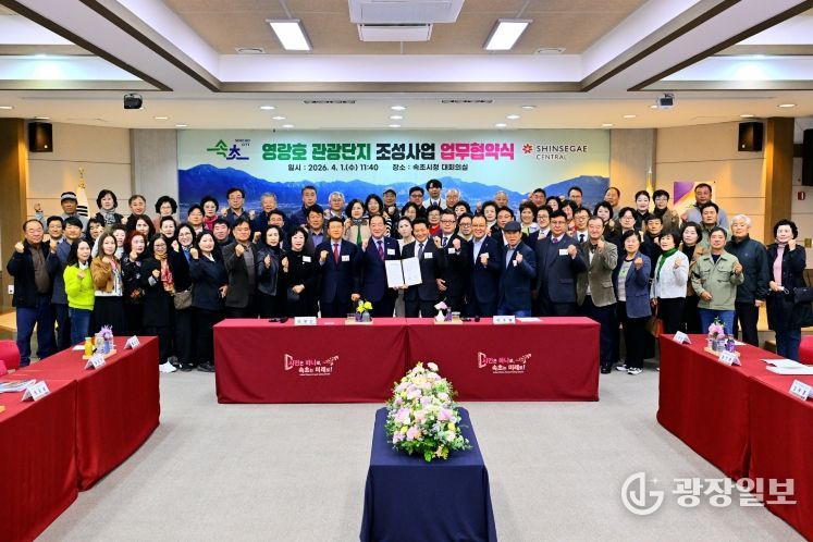 광장일보 이현나 기자 | 속초시는 2026년 4월 1일 시청 대회의실에서 영랑호 관광단지 조성사업의 성공적인 추진을 위해 민간사업자인 ㈜신세계센트럴과 업무협약을 체결했다.