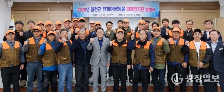 광장일보 주재영 기자 | 합천군은 4월 1일 합천군청 제2청사 3층 회의실에서 ‘2026년 유해야생동물 피해방지단 발대식’을 개최했다.