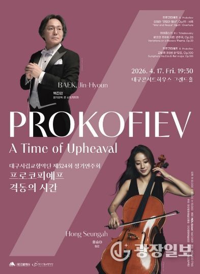 광장일보 주재영 기자 | 20세기 전쟁과 냉전의 격랑 속에서 인간 내면을 음악으로 그린 작곡가 세르게이 프로코피예프(Sergei Prokofiev, 1891~1953). 대구시립교향악단은 오는 4월 17일 오후 7시 30분 대구콘서트하우스 그랜드홀에서 '제524회 정기연주회 : 프로코피예프, 격동의 시간'을 개최한다.