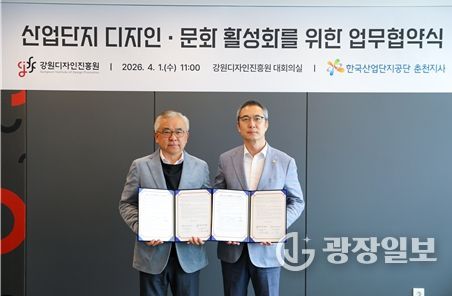 광장일보 이현나 기자 | 강원디자인진흥원은 1일 강원디자인진흥원 대회의실에서 한국산업단지공단 강원지역본부 춘천지사와 산업단지 내 디자인·문화 활성화를 위한 공동사업 추진 업무협약을 체결했다고 밝혔다.