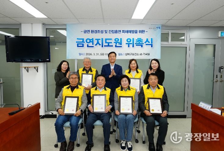 성북구 관계자는 “이번에 위촉된 금연지도원들은 법령에 따른 지도·점검뿐 아니라 흡연의 폐해를 알리는 금연 홍보대사 역할도 수행하게 된다”며 “구민 건강 보호와 금연문화 정착을 위해 적극적인 활동을 당부한다”고 말했다.