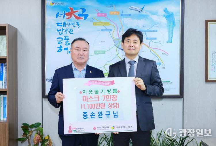 류한국 서구청장은 “고유가 등 어려운 시기임에도 나눔을 실천해 주신 손완규 대표에게 진심으로 감사드리며, 전달해 주신 물품은 필요한 곳에 잘 전달하겠다.”라고 전했다.