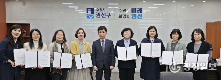 광장일보 박균현 기자 | 지난 1일, 수원시 권선구는 권선구청 구청장실에서 행정의 최일선에서 헌신․봉사하고 있는 통장들이 참석한 가운데‘2026년 상반기 통장자녀 장학금’전달식을 개최했다.