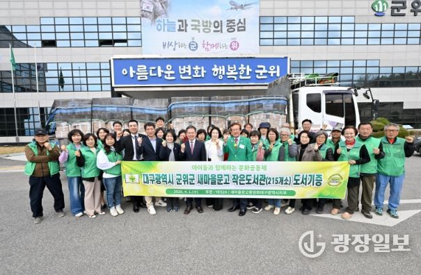 광장일보 주재영 기자 | 군위군 새마을회는 4월 1일 군청 전정에서 국내 대표 온라인 서점 예스24와 함께 도서 후원 전달식을 개최하고, 도서 5만 2천 권을 후원받았다.