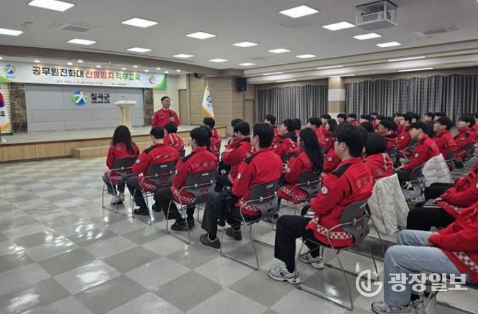 광장일보 주재영 기자 | 칠곡군은 지난달 31일 군청 강당에서 공무원진화대 150여명이 참석한 가운데 산불방지 직무교육을 실시하며 산불 대응 역량 강화에 나섰다.