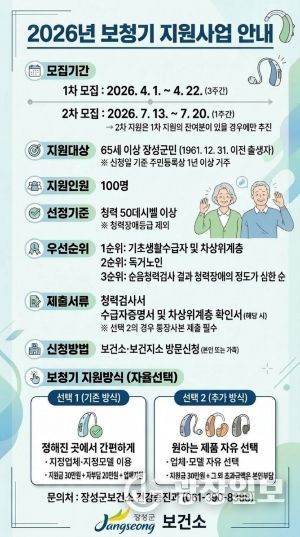 광장일보 주재영 기자 | 장성군이 올해부터 어르신 보청기 지원사업에 ‘선택형 지원 방식’을 도입한다.