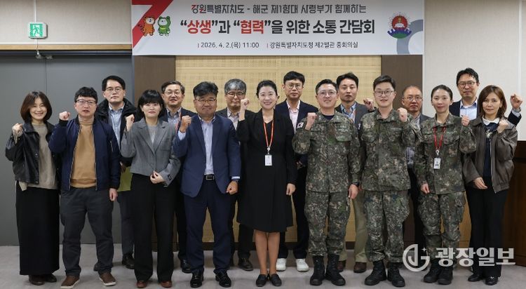광장일보 이현나 기자 | 강원특별자치도는 4월 2일 해군 제1함대 사령부와 간담회를 개최하고 도와 군의 협력을 위한 의견을 나눴다.
