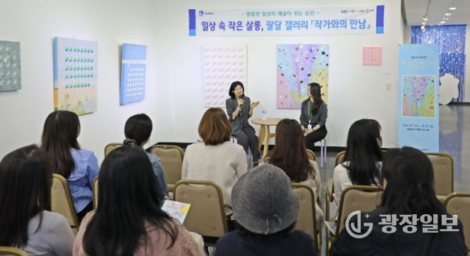광장일보 박균현 기자 | 수원시 팔달구는 지난 4월 2일, 팔달구청 1층 팔달 갤러리에서 4월 전시 작가인 현수영 작가를 초청하여 지역 주민들과 함께 소통하는 ‘작가와의 만남’ 행사를 개최했다고 밝혔다.