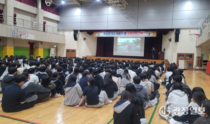 광장일보 주재영 기자 | 경북교육청은 3일 구미시에 있는 형곡고등학교에서 학생 440여 명을 대상으로 이륜차와 개인형 이동장치(PM) 이용 안전을 중심으로 한 교통안전교육을 실시했다고 밝혔다.