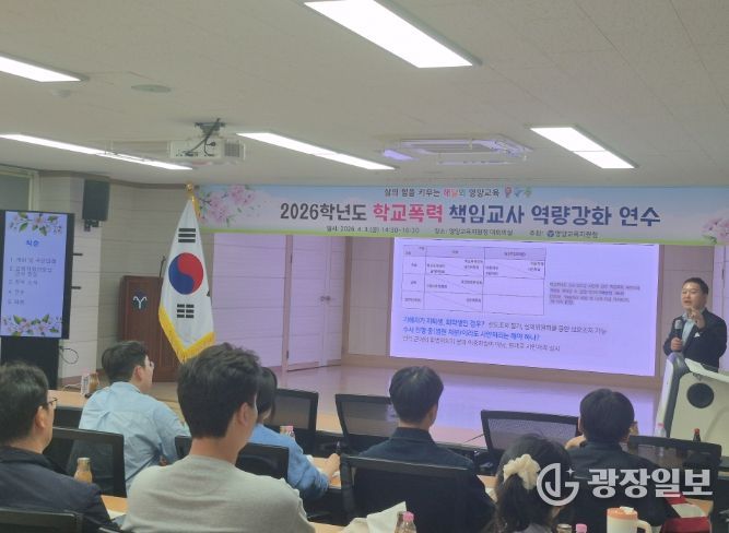 광장일보 주재영 기자 | 경상북도영양교육지원청은 4월 3일 영양교육지원청 3층 대회의실에서 관내 초·중·고등학교 학교폭력 책임교사 및 학교폭력 업무 담당자를 대상으로 '2026학년도 학교폭력 책임교사 역량 강화 연수'를 실시했다.
