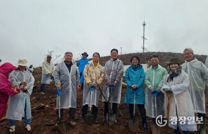 광장일보 주재영 기자 | 황명석 경상북도지사 권한대행은 식목일을 하루 앞둔 4월 4일, 안동시 풍천면 어담리 산불 피해 현장에서 열린 (사)평화의 숲 주최 산불 피해지 복원 나무 심기 행사에 참석하고 지역 현안을 건의했다.