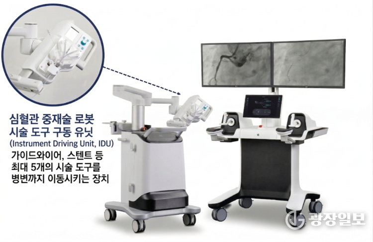 경피적 관상동맥중재술은 가느다란 카테터를 심장 관상동맥까지 삽입한 뒤, 좁아진 관상동맥에 풍선을 진입시켜 혈관을 넓히고 스텐트를 펼쳐 넣는 고난도 시술이다. 동맥경화나 혈전으로 관상동맥이 좁아지거나 막힌 협심증, 심근경색 환자를 대상으로 시행된다. 기존에는 의료진이 실시간 엑스레이 영상을 보면서 직접 시술해야 했기 때문에 장시간 방사선에 노출되고, 무거운 납 차폐복을 착용해야 하는 신체적 부담이 컸다.