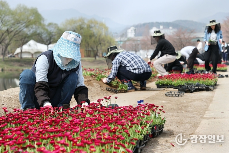 가평군= 주재영 기자 | 가평군이 자라섬에 대규모 봄꽃을 식재하며 관광객 유치와 '봄꽃 페스타' 분위기 조성에 나섰다.