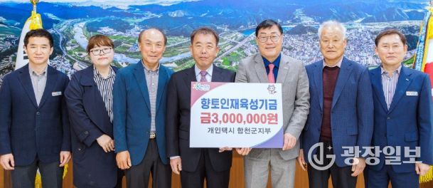 광장일보 주재영 기자 | 개인택시 합천군지부(지부장 이홍인)는 6일 (재)합천군인재육성재단(이사장 김윤철)을 방문하여 향토인재육성기금 300만원을 기탁했다.