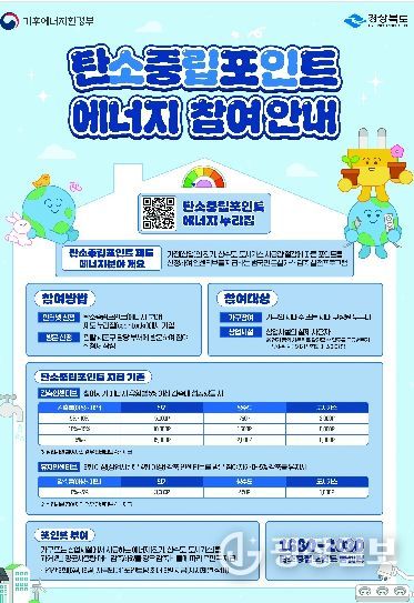광장일보 주재영 기자 | 경상북도는 도민의 탄소중립 실천을 유도하고 온실가스 감축을 확대하기 위해 ‘탄소중립포인트제(에너지·자동차 분야)’ 참여자를 모집한다.