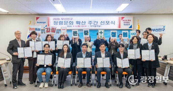 광장일보 주재영 기자 | 부산진구는 4월 6일‘청렴문화 확산 주간’을 맞아 청렴 실천 결의를 다지는 선포식을 개최했다고 밝혔다.