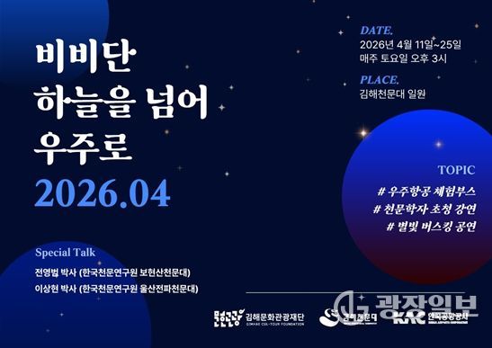 행사는 김해천문대 일원에서 진행되며, ▲우주항공 체험부스 ▲천문학자 초청 강연 ▲별빛 버스킹 공연 등으로 구성된다.