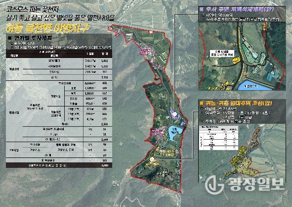 먼저 북천면 이명지구는 2023년 공모에 선정되어 총 60억 원 규모의 사업이 추진 중이다. 가나안농장 철거를 중심으로 귀농·귀촌 임대주택, 마을주차장, 마을숲 조성 등 재생사업까지 함께 진행되며 단순 정비를 넘어 ‘살아나는 공간’으로 변화하고 있다.