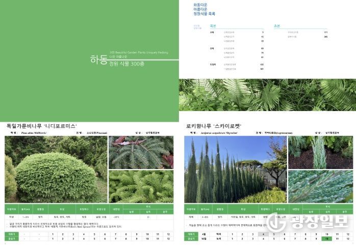 이번 도감에는 하동군 자생식물과 국내외 도입 식물 중 정원 소재로 가치가 높은 300종(교목, 관목, 초화류, 지피식물 등)이 수록됐다.