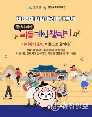 광장일보 주재영 기자 | 경남 밀양시는 제68회 밀양아리랑대축제의 사전 홍보를 위해 오는 4월 13일부터 5월 6일까지 온라인 리듬게임 챌린지 이벤트를 운영한다.