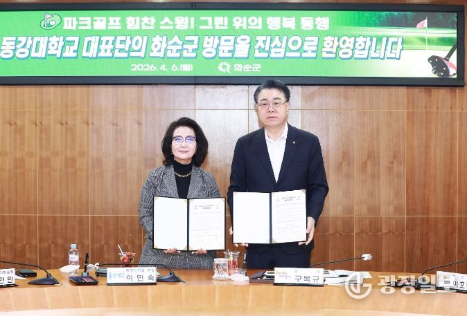 광장일보 주재영 기자 | 화순군은 지난 6일 화순군청 소회의실에서 동강대학교와 파크골프 활성화를 위한 업무 협약을 체결했다고 밝혔다.