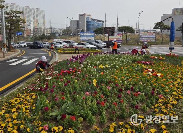 시는 주요 교통섬 6개소와 대형 화분 등에 봄꽃을 배치해 운전자와 보행자 모두가 봄의 정취를 느낄 수 있도록 했다.