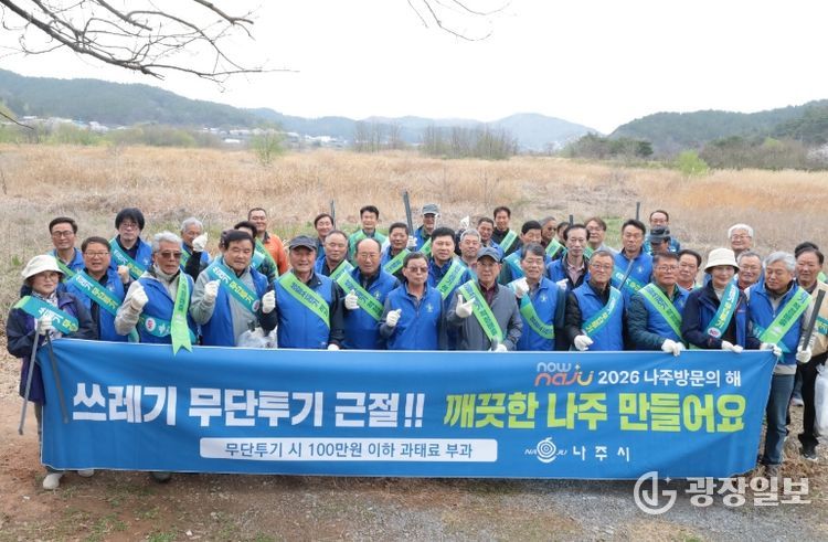 광장일보 주재영 기자 | 전남 나주시 농촌지도자회가 ‘2026 나주방문의 해’를 맞아 나주호 일원 환경 정화 활동을 펼치며 탄소중립 실천과 쾌적한 농촌 환경 조성에 앞장서고 있다.