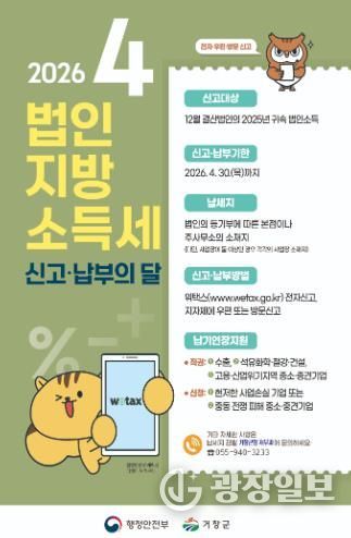 광장일보 주재영 기자 | 거창군은 4월 한 달간 12월 결산 법인을 대상으로 2025년 귀속 소득에 대한 법인지방소득세 집중 신고기간을 운영한다.