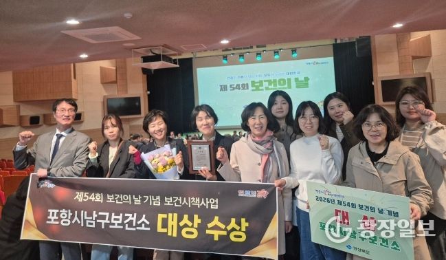 광장일보 주재영 기자 | 포항시 남구보건소는 제54회 보건의 날 기념 ‘보건시책사업 우수기관 평가’에서 대상을 수상했다.