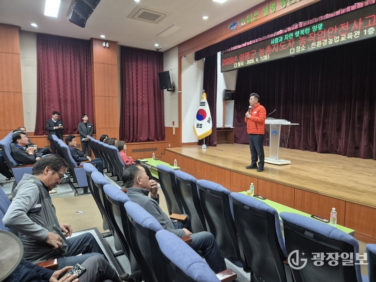광장일보 =주재영 기자 | 양평군은 지난 7일 친환경농업교육관에서 농촌지도자 양평군연합회 회원과 농작업 대행 작업자 등 80여 명을 대상으로 '2026년 농작업 안전사고 예방 리더자 교육'을 진행했다.