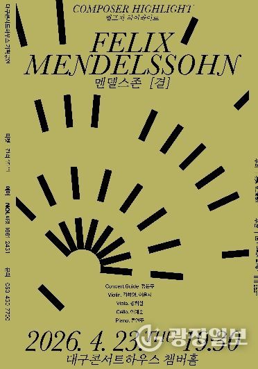광장일보 주재영 기자 | 대구문화예술진흥원 대구콘서트하우스는 4월 23일 오후 7시 30분, 챔버홀에서 ‘컴포저 하이라이트 : 멘델스존, 결’을 개최한다.