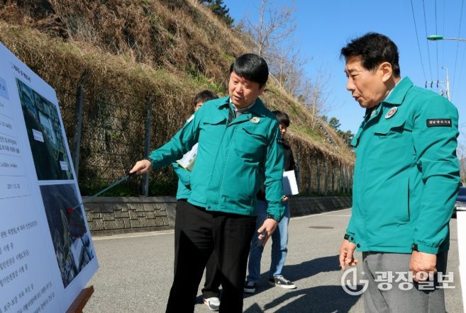 먼저 산막공단남14길 절토사면 1,2호를 방문해 절토사면의 균열과 낙석 위험 여부 등을 확인했으며, 이어 북정빗물펌프장비점오염저감사업 현장을 찾아 사업 추진현황을 점검하고 북부 자연재해위험개선지구 정비사업 현장에서는 재해예방시설 정비상황과 공사장 안전조치 이행 여부를 중점적으로 확인했다.