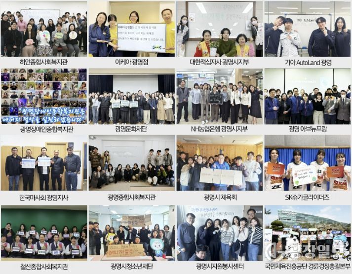 이번 선언에는 광명시자원봉사센터, 광명문화재단, 광명시청소년재단, 광명시체육회, 광명종합사회복지관, 철산종합사회복지관, 하안종합사회복지관, 광명장애인종합복지관, 한국마사회 광명지사, 국민체육진흥공단 경륜경정총괄본부, 대한적십자사 광명시지부, 광명 아브뉴프랑, 기아 오토랜드 광명, 이케아 광명점, NH농협은행 광명시지부, SK 슈가글라이더즈 등 총 16개 기관이 참여했다.