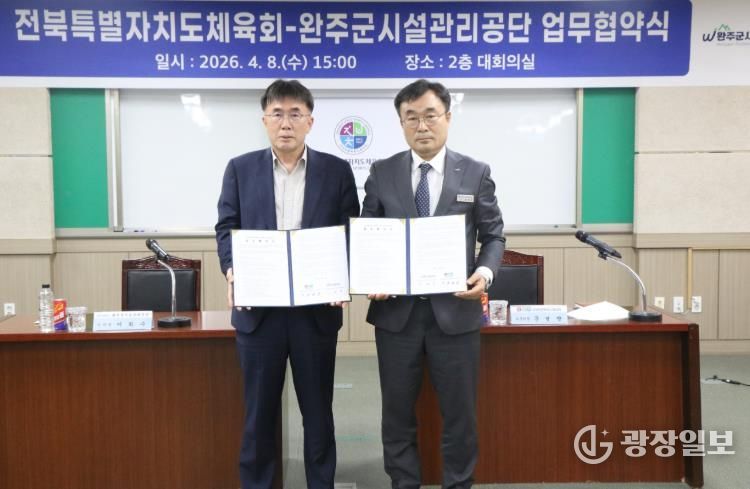 광장일보 주재영 기자 | 완주군 시설관리공단이 지난 8일 전북특별자치도체육회관에서 전북특별자치도체육회와 생활체육 활성화 및 공공체육시설 운영 협력을 위한 업무협약(MOU)을 체결했다.