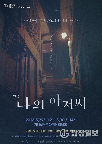 광장일보 주재영 기자 | (재)김해문화관광재단 김해서부문화센터는 ‘2026 공연예술 지역유통 지원사업’ 선정작인 연극 '나의 아저씨'를 오는 5월 29일과 30일 양일간 하늬홀에서 선보인다.