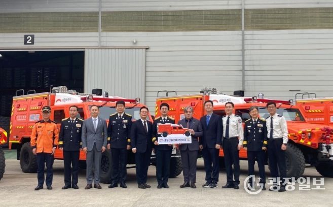 광장일보 주재영 기자 | 경상남도 소방본부는 희망브리지 전국재해구호협회로부터 국민 성금으로 제작된 산악 지형 특화 중형산불진화차 2대를 기탁받아 산청·하동소방서에 배치하고 본격 운용에 들어간다고 9일 밝혔다.