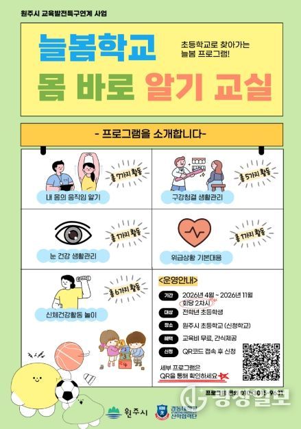 한편 원주시는 지난해 ‘찾아가는 우리동네 늘봄학교’ 운영을 통해 15개 학교, 2,800여 명의 학생이 참여하는 성과를 거둔 바 있다.
