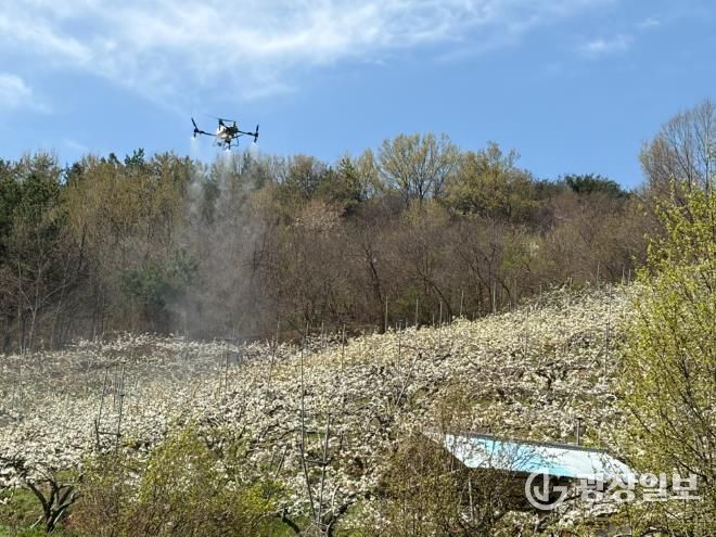 이번 실증시험은 최근 이상기온으로 배 개화 시기가 예상 시기보다 앞당겨짐에 따라 8개 희망 농가에 대해 이뤄졌다.