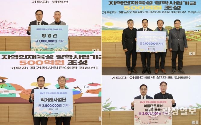 이날 기탁식에는 지역 단체와 업체, 개인들이 참여해 장학기금을 전달하며 해남의 미래를 이끌 인재 양성에 뜻을 함께했다. 참석자들은 “지역에서 받은 사랑을 다시 지역사회에 환원하고, 교육을 통해 지속 가능한 해남을 만들어가겠다”는 의지를 전했다.