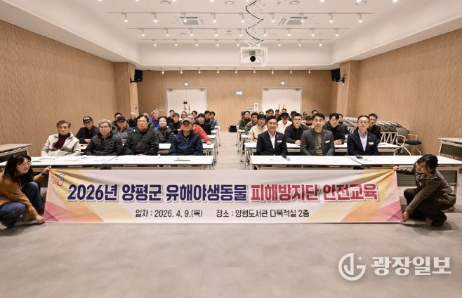 광장일보 주재영 기자 | 양평군은 지난 9일 아프리카돼지열병(ASF) 확산 방지와 농작물 피해 예방을 위해 ‘2026년 양평군 유해야생동물 피해방지단 안전교육’을 실시했다.