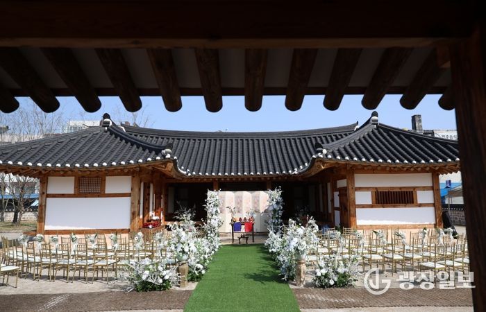 도는 11일 전주 전라감영(내아)에서 ‘전북, 마이웨딩’ 제1호 결혼식이 열렸다고 밝혔다. 이번 예식은 전라감영의 역사적 공간을 활용해 전통과 현대가 어우러진 연출로 진행돼 하객들의 큰 호응을 얻었다.
