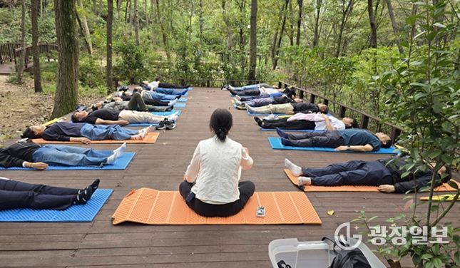 [부산 치유의 숲(기장군 철마면)] 인체의 면역력을 높이고 건강을 증진시키는 ▲임신부 가족의 숲태교 ‘마주보입시더(the)숲’ ▲어르신 건강 증진을 위한 ‘단디하입시더(the)숲’ ▲ 싱잉 볼 명상 등 산림치유 프로그램을 운영한다.